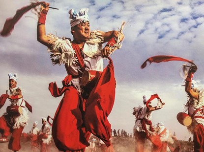 黄河大秧歌”的音调,具有热情、豪放的特点,唱腔常衬以“啊、哈、哟”等虚词。黄河大秧歌以其种类丰富、形式灵活多样、表演艺术形象逼真而在民间舞蹈中独树一帜,呈现出璀璨的黄河区域特色,而且至今蓬勃发展。